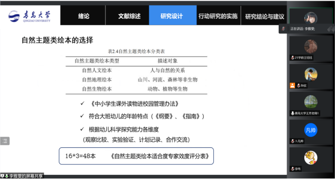 12月30日,电竞菠菜 学前教育专业顺利召开2021级硕士研究生学位论文线上预答辩。本次预答辩由学前教育专业全体硕士生导师担任小组成员。