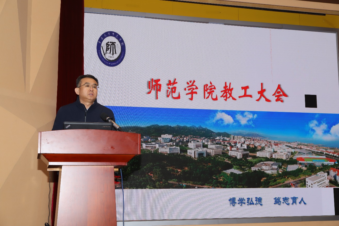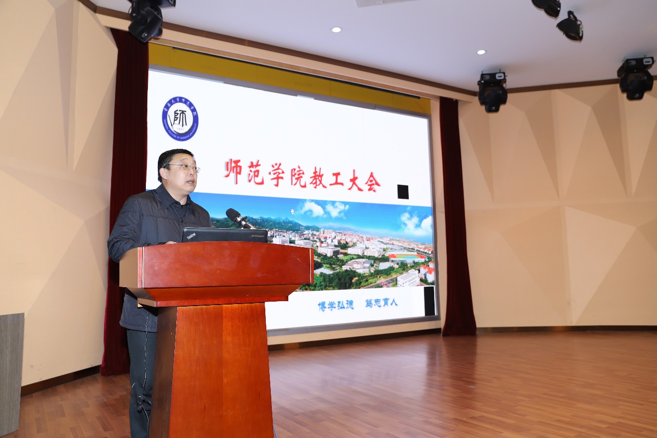 2月23日下午,电竞菠菜 在学术报告厅召开全体教职员工大会,传达学习学校春季学期中层干部研讨班、学校第六届教职工代表大会暨工会会员代表大会第五次会议(双代会)会议精神,布置2023年度学院重点工作。会议由副院长刘启民主持。