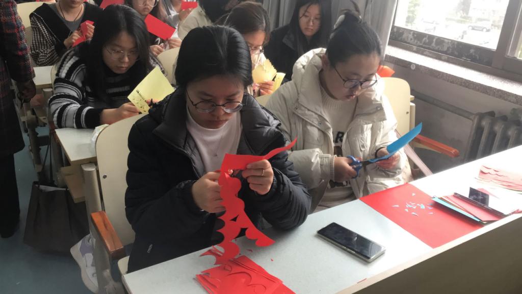 剪纸是中国非物质文化遗产之一。剪纸实践课程是中国文化概论课程贯彻体验式教学的重要一环。剪纸实践课眨眼而过,却在每个大学生心中种下了传承非物质文化遗产、传承中华优秀文化的火种,燃起了对于传统剪纸艺术热爱的火苗,启迪了对于幼儿教育与传统技艺融合的奇思妙想。