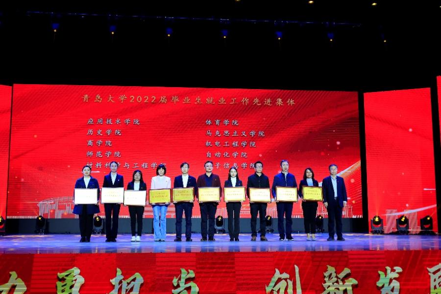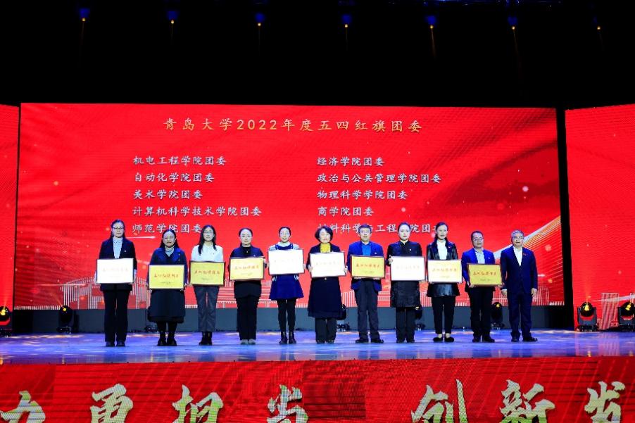 4月28日,学校在青大剧院隆重举行“凝心聚力勇担当 创新发展向未来”2022年度学团工作表彰会。在本次表彰中,电竞菠菜 获“青岛大学2022年度五四红旗团委”“青岛大学2022届毕业生就业工作先进集体”等多项荣誉。