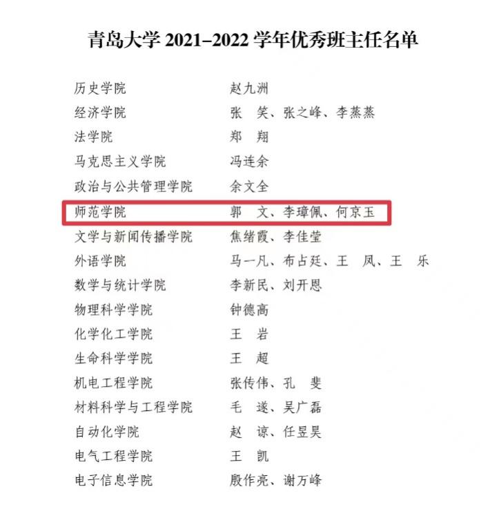 郭文、李璋佩、何京玉荣获学校2021—2022学年优秀班主任