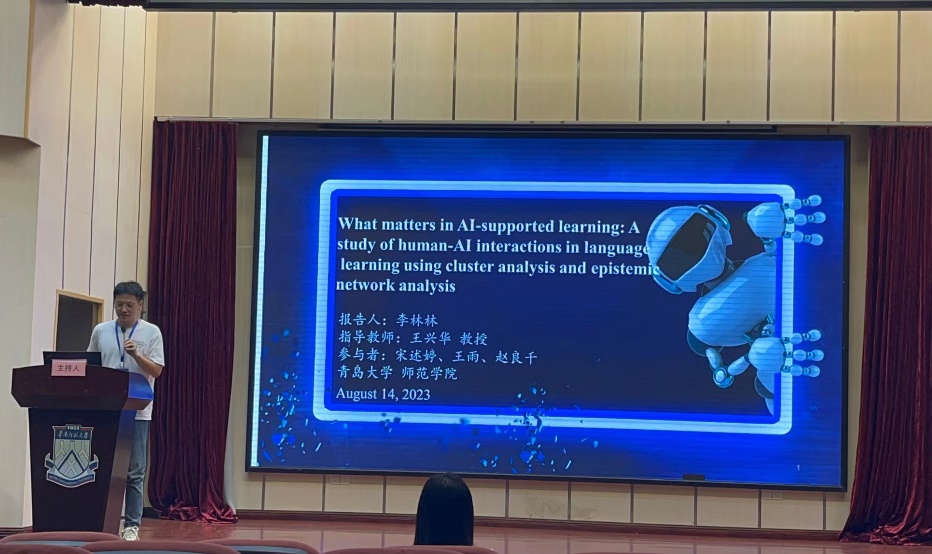 电竞菠菜 人工智能教育实验室王兴华教授研究团队硕士生李林林在会上汇报展示了题目为“AI支持下的语言学习模式探究——基于聚类分析和认识网络分析”的学术论文。该会议论文,以硕士生李林林为第一作者,王兴华教授为通讯作者,宋述婷,王雨,赵良千为共同作者,荣获特等奖。该论文运用聚类分析和认识网络分析深入探究了六年级学生在使用AI教师进行英语学习时的具体情况及其与AI的交互模式,发现深度学习能放大AI个性化指导的优势并增强学习社区感,而学生被动或机械地与AI交互则可能会降低其学习社区感并取得较差成绩。