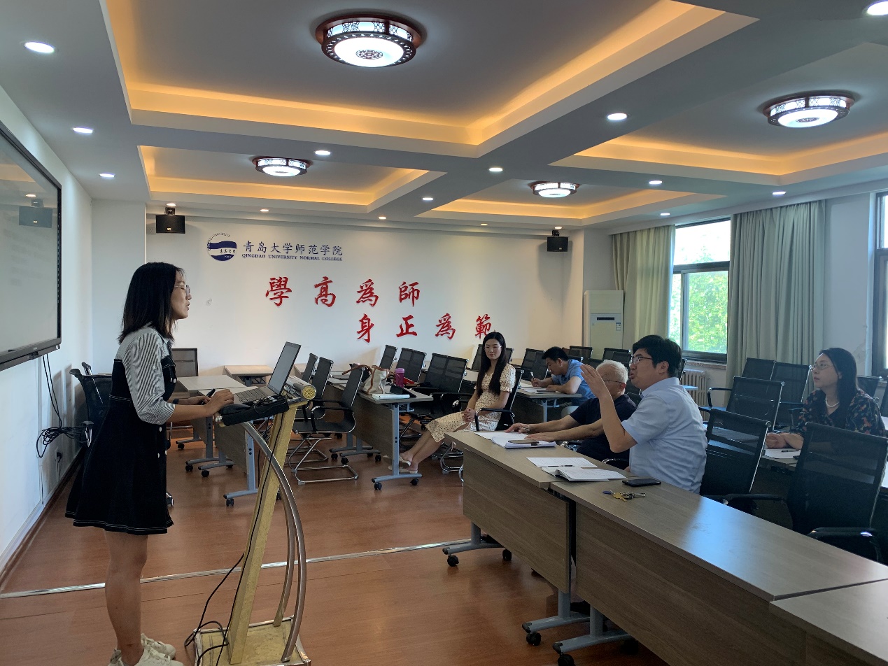 孙晓红和元静老师分别对自己承担的《中外教育史》和《教育统计学》的教学计划、教学大纲、参考资料、PPT以及第一节的课堂教学内容进行了详细阐述和讲解,并介绍学生的成绩评定标准以及构成等。
