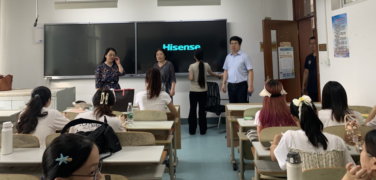夏锡梅、王忠厚在第一节上课前,带领学工办和教学办工作人员,对各班级教育教学秩序进行了全面巡查,并就教学媒体应用、课堂教学秩序、组织纪律等与师生们进行沟通交流。