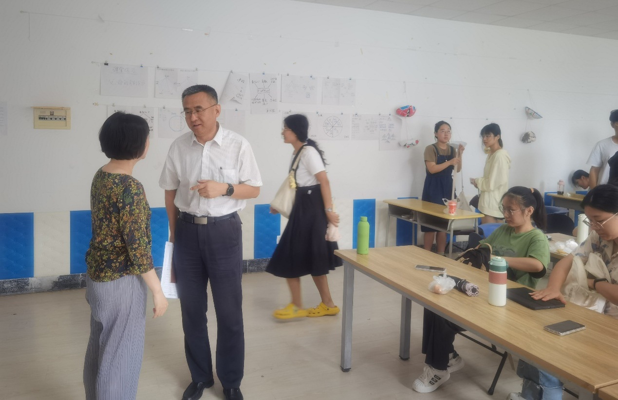 孙百才在全面巡视了各班级教学情况后,听取了李纯老师的《幼儿园班级管理》教学,课间与老师们就课堂教学思路、方式、方法等进行了深入的沟通与交流。