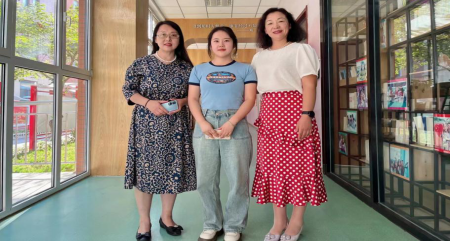 在城阳区国成小学,研究生导师庞晖老师带着她的学生,与该校负责人郝玉芹校长进行交接工作。庞晖老师对学生提出了建议:要明确目标、脚踏实地、认真地完成这次实习,不断提高教师专业素养,将所学的理论结合实践,让学有所用,勤观察、多思考,促进自身专业发展。