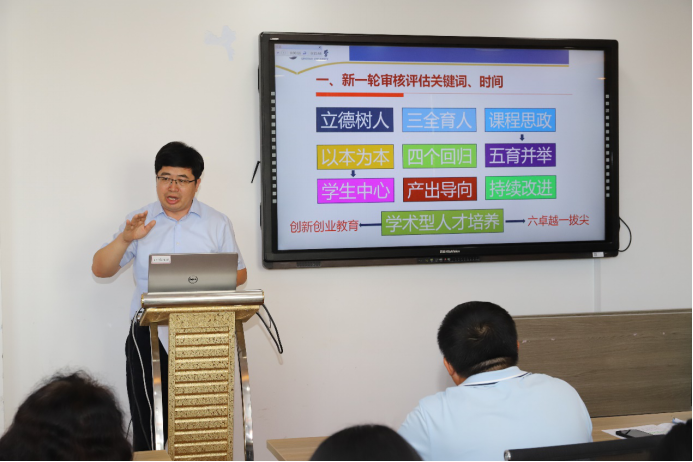 院长助理王忠厚结合《新一轮本科教育教学审核评估学院(部)工作要点》和学院各专业教育教学现状,详细解读了学校本科审核评估实施方案,部署各专业分别组织师生以系为单位召开专题研讨会,讨论本专业本科教育改革与建设工作中存在的问题及解决实施方案,为新一轮本科教育教学审核评估做好充分准备。