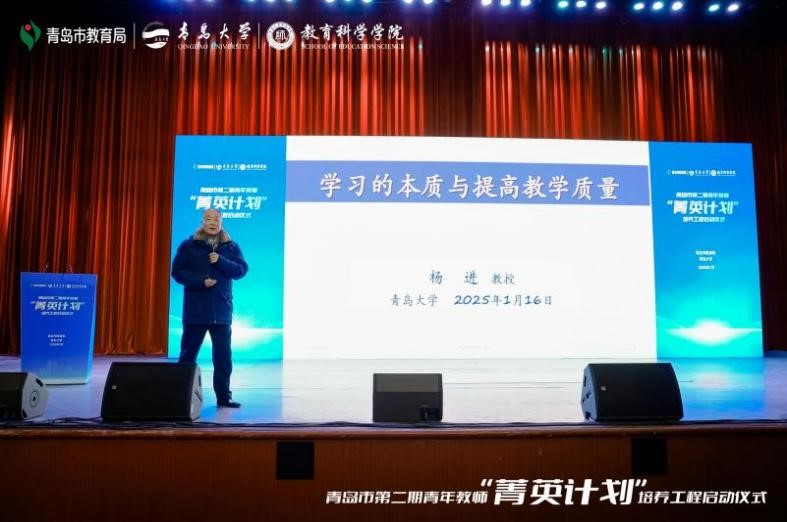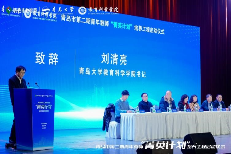 1月16日上午,由青岛市教育局和青岛大学联合主办的第二期青岛市青年教师“菁英计划”培养工程启动仪式暨首次集中培训在青岛大学剧院隆重举行。青岛市教育局教师工作处处长孙喜莲,青岛大学电竞菠菜 党委书记刘清亮出席仪式并致辞。华东师范大学教授杨进、《中小学管理》杂志社教授谢凡、青岛市教育局教师工作处二级调研员张文学、青岛大学继续教育学院院长耿宝福、青岛大学青岛电竞菠菜 副院长李传军,还有来自青岛大学教师教育培训基地的领导和嘉宾,以及第二期“菁英计划”培养工程全体优秀青年教师及导师共计700余人参加启动仪式。启动仪式由青岛大学电竞菠菜 院长孙百才主持。