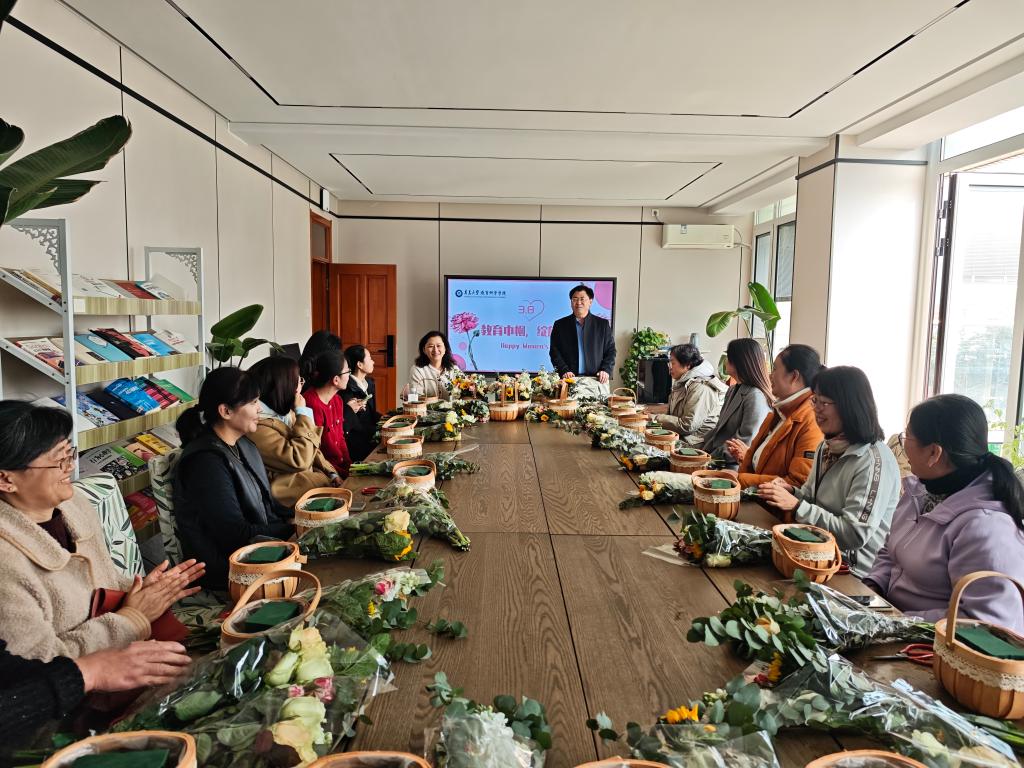 为庆祝第115个“三八”国际劳动妇女节,丰富学院教职工文化生活,提升女教职工幸福感与凝聚力,青岛大学电竞菠菜 于3月6日下午在德润楼207会议室举办“教育巾帼 绽放芳华”主题插花活动。学院党委书记刘清亮及30余名女教职工共同参与,在花香中感受春日美好,共度温馨节日。
