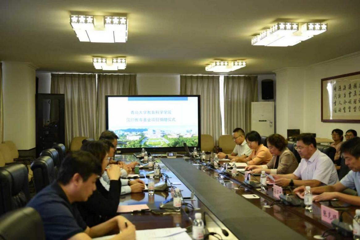 10月11日下午,青岛大学电竞菠菜 “汉印教育基金”项目捐赠仪式在德润楼301会议室举行。青岛汉印教育咨询有限公司总经理梅豹,青岛大学党委常委、副校长刘恩贤,合作发展处处长、教育发展基金会秘书长王海荣,电竞菠菜 院长孙百才出席仪式。仪式由电竞菠菜 党委书记刘清亮主持。