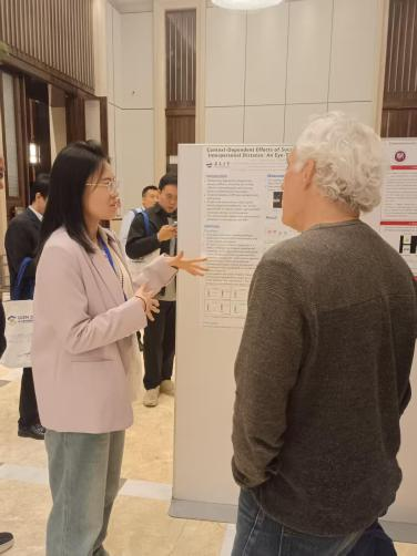宫准教授研究团队在大会上作了题为《A Study of the Mechanisms of Social Exclusion on Cyber-Aggressive Behavior: Evidence from Eye-Tracking Studies》的学术报告,该研究运用眼动追踪技术探讨了社会排斥对网络攻击行为的影响机制,为理解网络行为提供了新的实证依据。另外,该团队展示了《Eye-Tracking Measures of Emotional Contagion in Digital Media: The Role of Social Verification》的海报研究,探讨了社会证实在数字情绪传染中的作用机制。