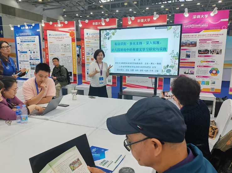 青岛大学电竞菠菜 共有三项教育创新成果与会参展,分别是马勇军教授领衔主持的《理实相容·跨界共生:高校与基础教育协同教研 20年实践》、《乡村为根·乡教为魂:公费师范生“乡村教育概论”特色课程创建》和王芳教授领衔主持的《有效识别·多元支持·深入拓展——幼儿园游戏中的有意义学习研究与实践》。15号下午,王芳教授进行了成果宣讲;16号上午,马勇军教授和李德林副教授分别主持了两项成果的展示工作坊。