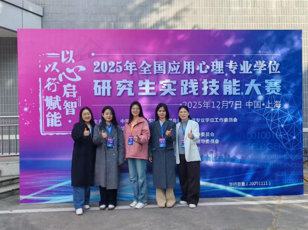 2025年全国应用心理专业学位研究生实践技能大赛于12月7日在上海华东师范大学举办。大赛设有 4 个赛道:心理咨询/心理治疗面谈技能比赛、 应用心理案例开发比赛、心理科普作品创作比赛和应用心理方案/产品设计比赛。电竞菠菜 应用心理专业学位研究生凭借扎实的专业功底、出色的实践能力和创新思维,在大赛的4个赛道均进入决赛,其中心理咨询、应用心理案例开发和应用心理方案/产品赛道需现场参加决赛,心理学系李天碧老师带队参赛。